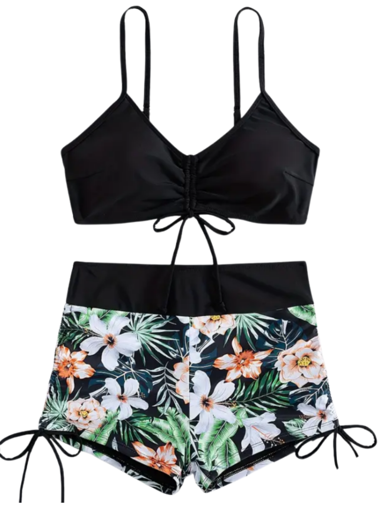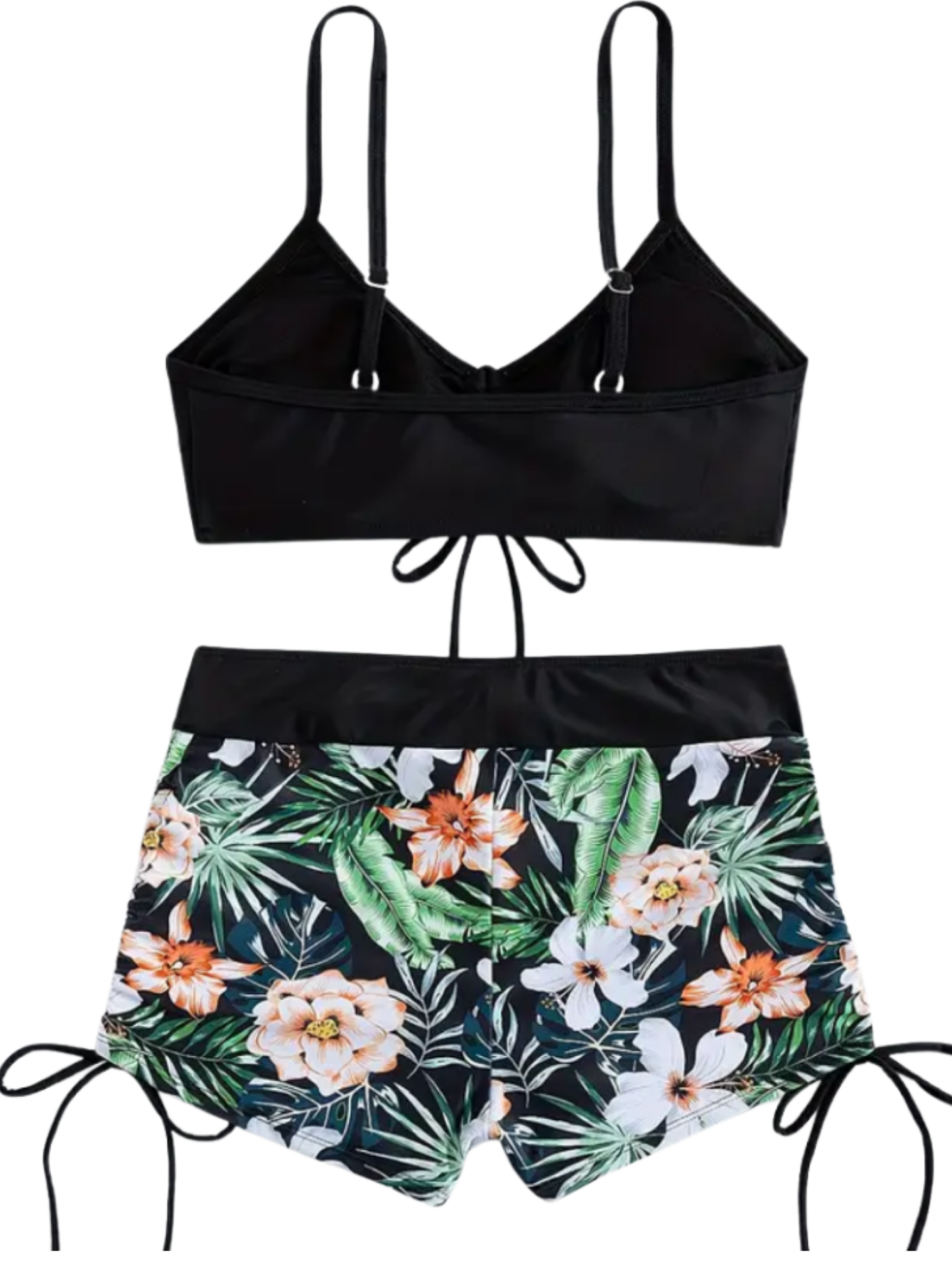 Strój Kąpielowy Dwuczęściowy Spodenki Wiązanie Czarny