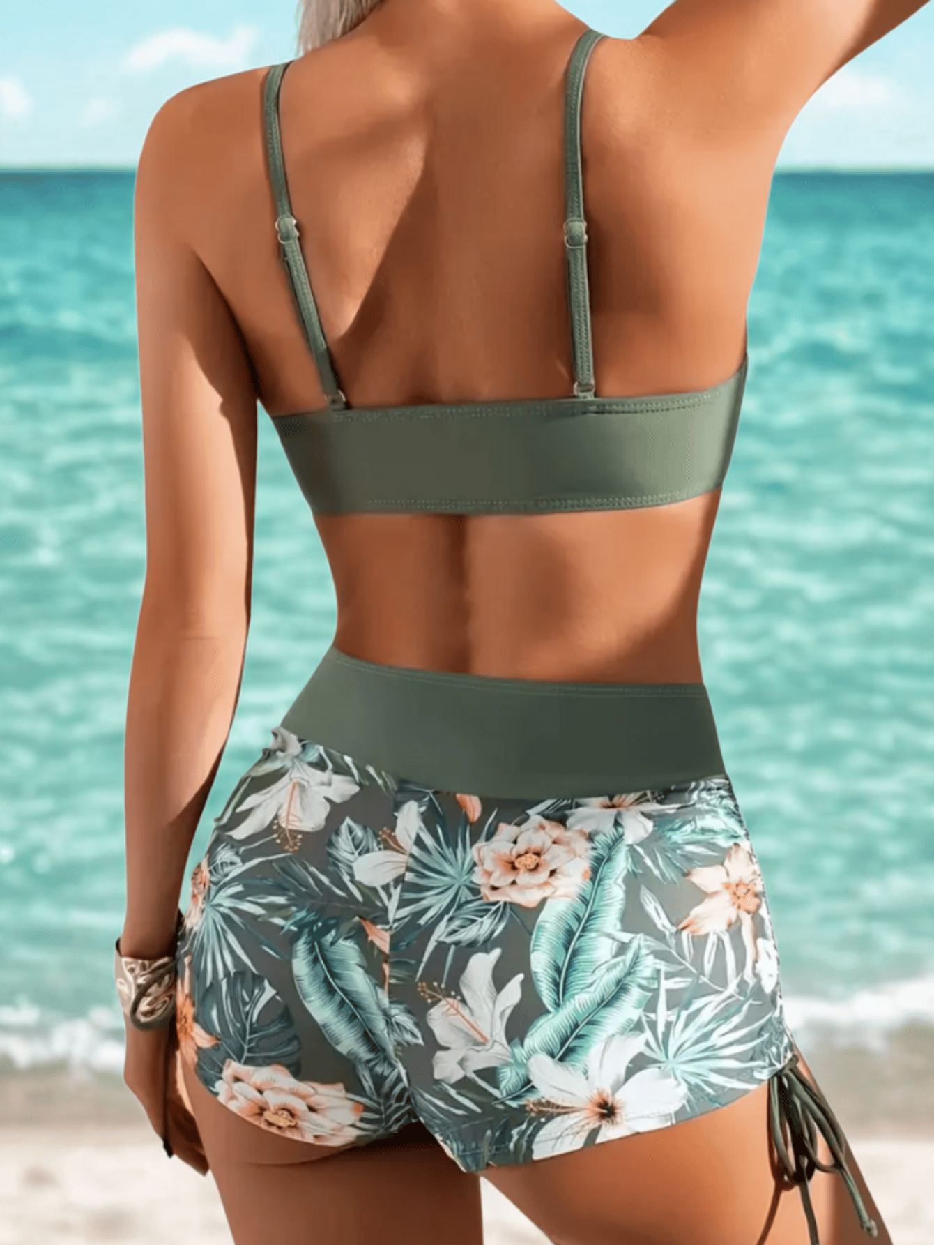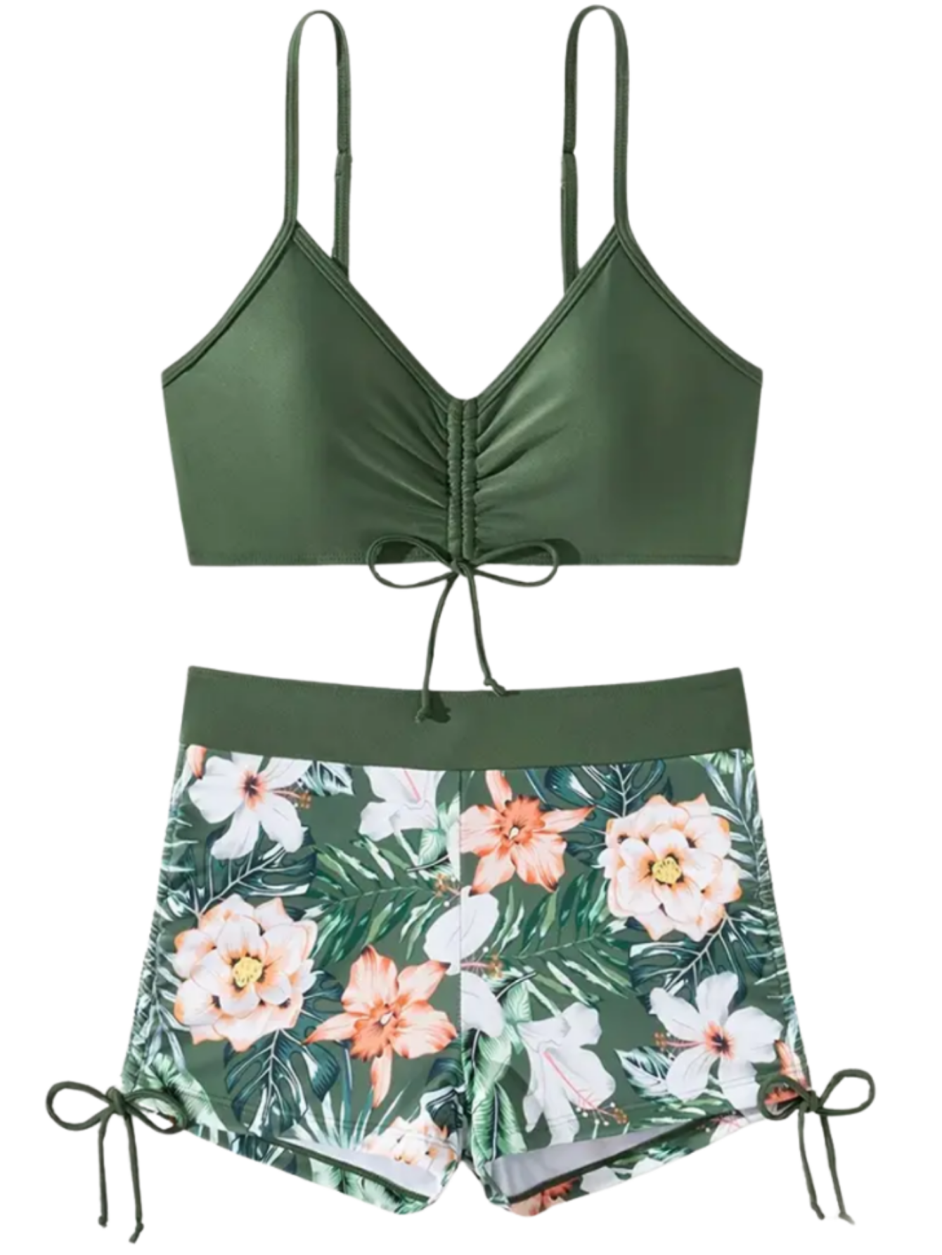 Strój Kąpielowy Dwuczęściowy Spodenki Wiązanie Zielony