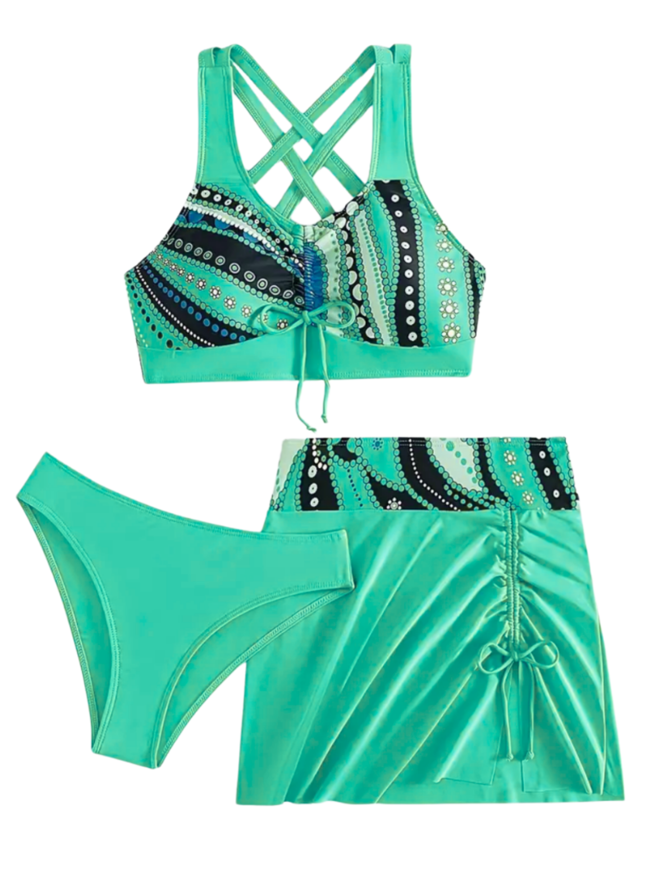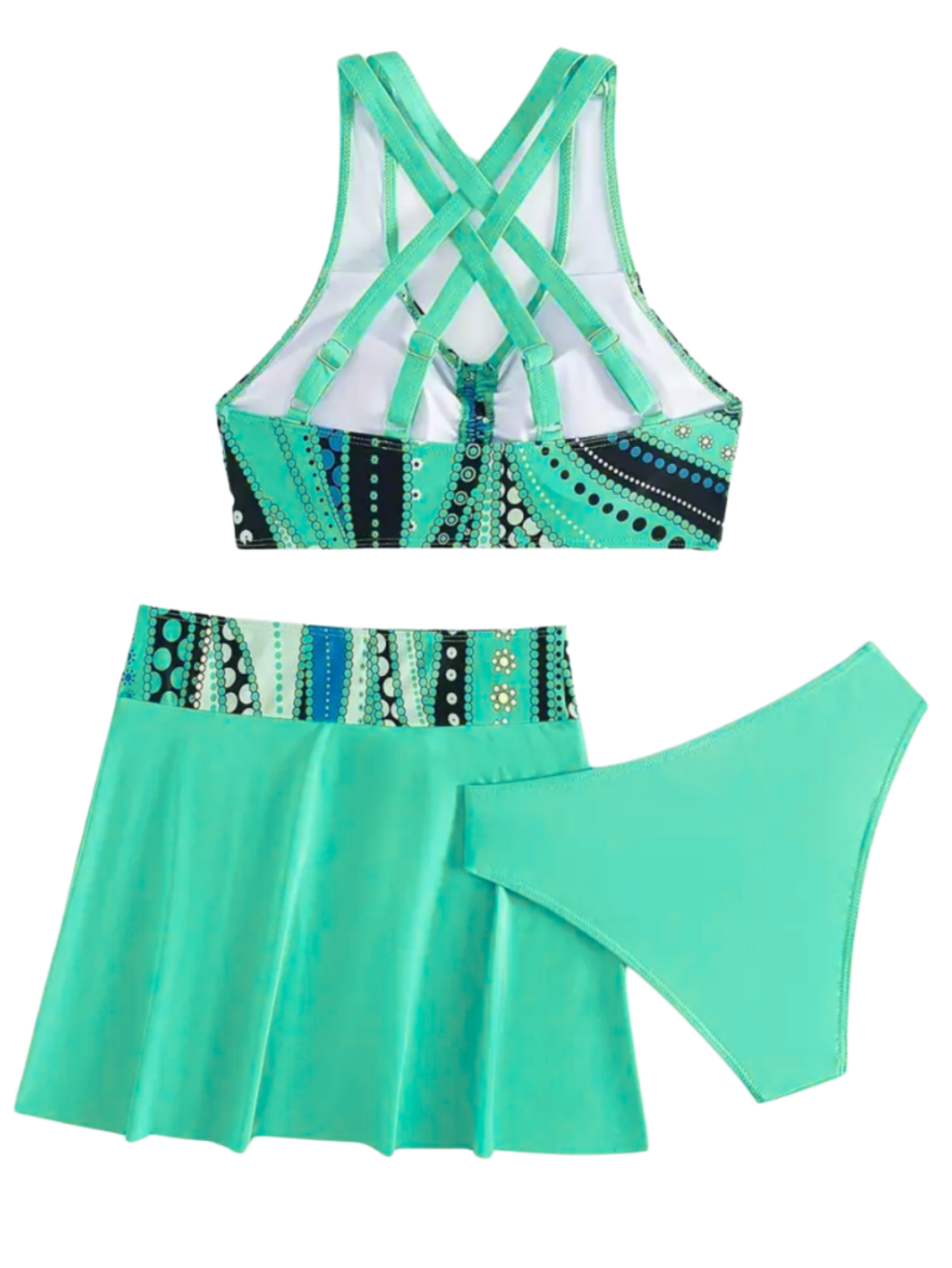 Strój Kąpielowy Trzyczęściowy Kostium Ze Spodenkami Zielony